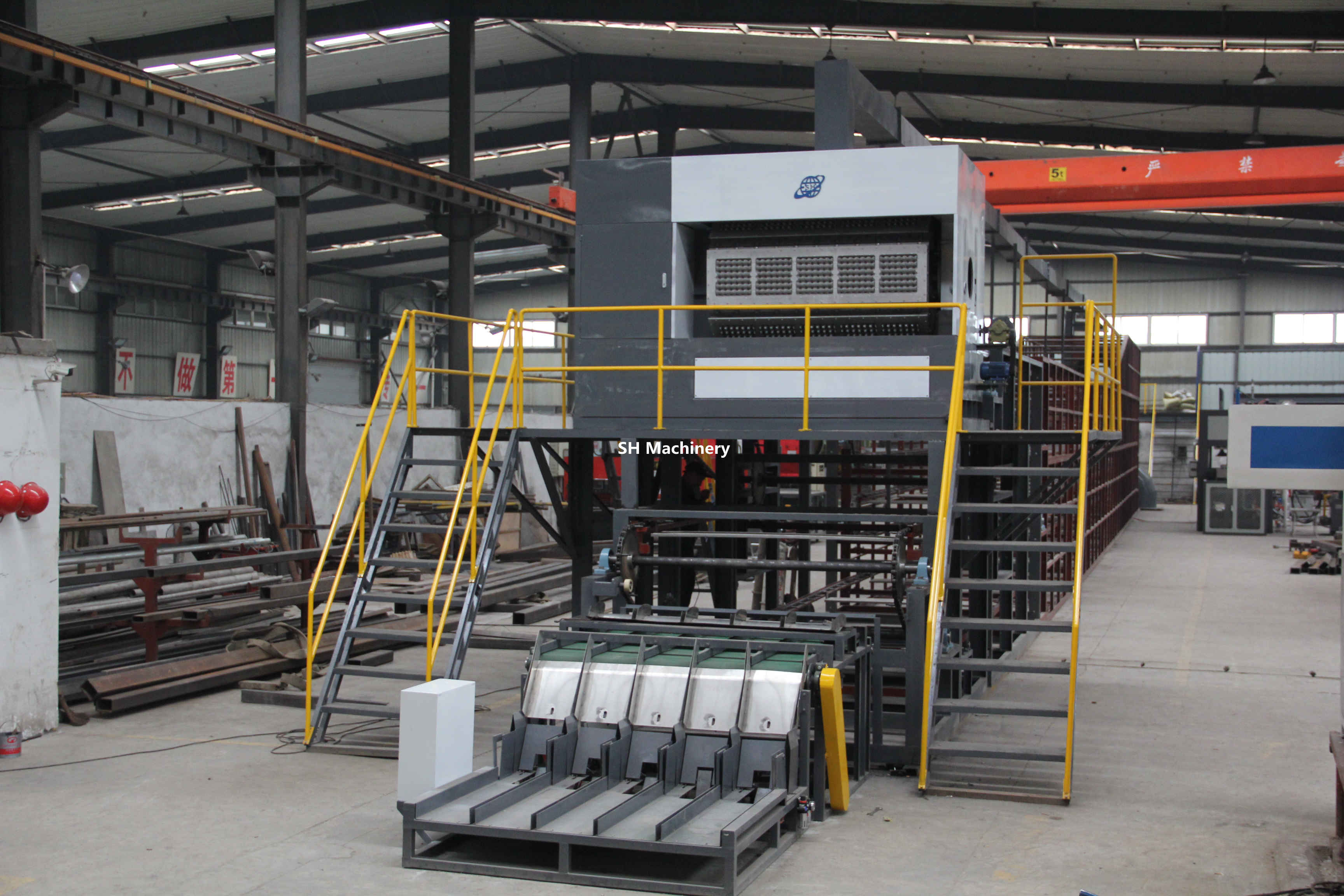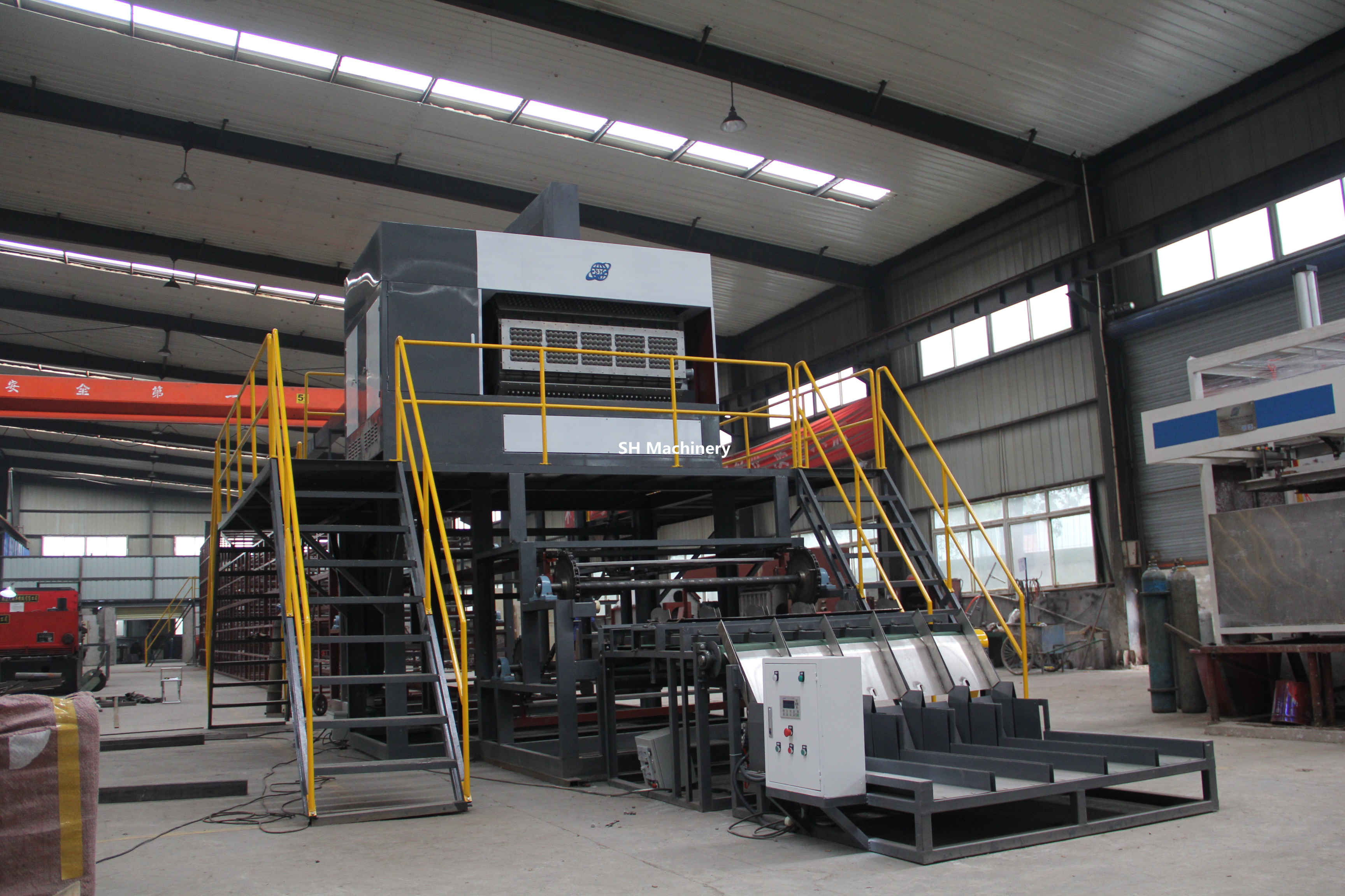 加納6000片每小時蛋托生產(chǎn)線多層金屬烘干線設備全貌