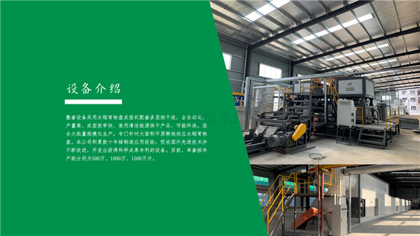 整套設(shè)備采用水稻育秧盤成型機配套多層烘干線,全自動化、產(chǎn)量高、成型效率快、使用清潔能源烘干產(chǎn)品、節(jié)能環(huán)保。適合大批量規(guī)模化生產(chǎn),專門針對大面積平原耕地供應(yīng)水稻育秧盤。本公司積累數(shù)十年械制造應(yīng)用經(jīng)驗,吸收國外先進技術(shù)并不斷改進,目前,單臺按年產(chǎn)量分別為500萬及1000萬片。