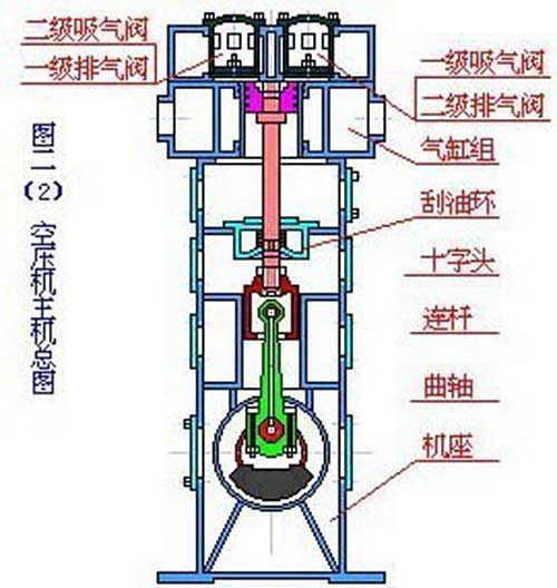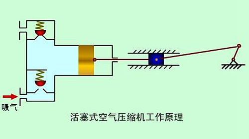 活塞式空氣壓縮機(jī)的工作原理:活塞式空壓機(jī)在氣缸內(nèi)作往復(fù)運(yùn)動(dòng)的活塞向右移動(dòng)時(shí),氣缸內(nèi)活塞左腔的壓力低于大氣壓力,吸氣閥開(kāi)啟,外界空氣吸入缸內(nèi),這個(gè)過(guò)程稱(chēng)為壓縮過(guò)程。當(dāng)缸內(nèi)壓力高于輸出空氣管道內(nèi)壓力后,排氣閥打開(kāi)。活塞的往復(fù)運(yùn)動(dòng)是由電動(dòng)機(jī)帶動(dòng)的曲柄滑塊機(jī)構(gòu)形成的。曲柄的旋運(yùn)動(dòng)轉(zhuǎn)換為滑動(dòng)--活塞的往復(fù)運(yùn)動(dòng)。這種結(jié)構(gòu)的壓縮機(jī)在排氣過(guò)程結(jié)束時(shí)總有剩余容積存在。在下一次吸氣時(shí),剩余容積內(nèi)的壓縮空氣會(huì)膨脹,從而減少了吸入的空氣量,降低了效率,增加了壓縮功。